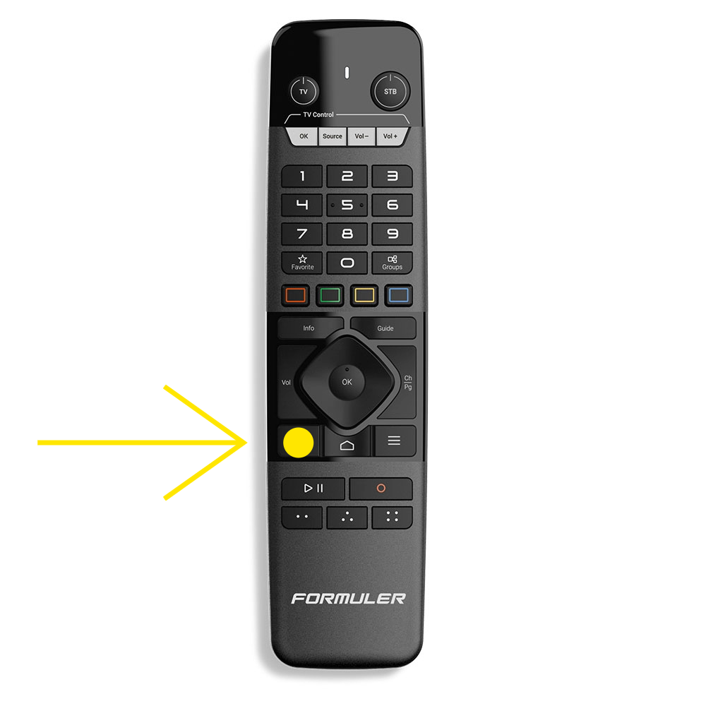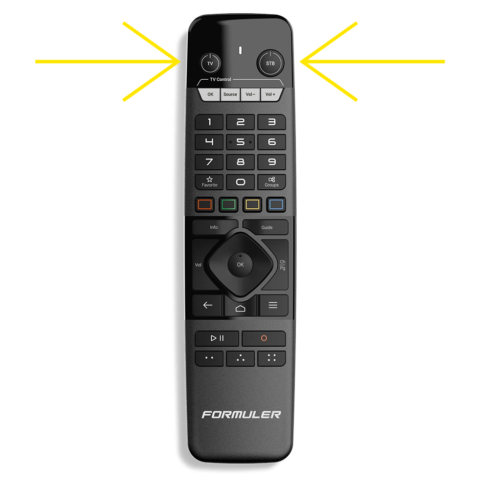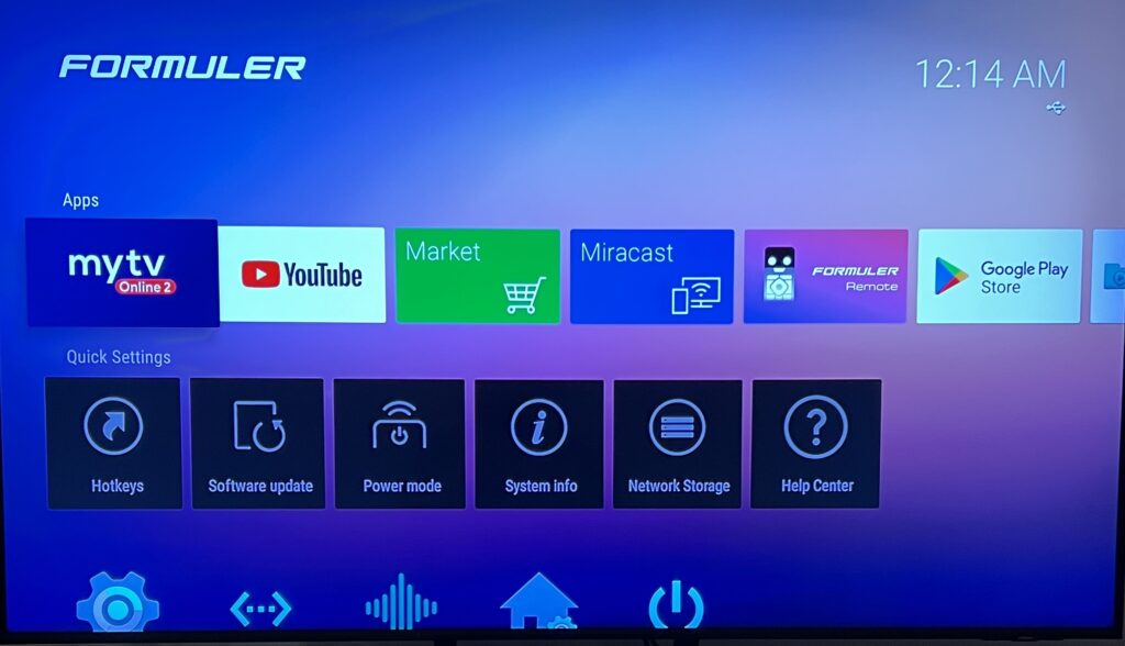 In principe heeft u alleen de afstandsbediening van het zwarte kastje nodig. Voor zowel de tv als het kastje. Om de televisie en het kastje aan te doen drukt men op de bovenste knoppen van de afstandsbediening. Na het opstarten komt u in het volgende scherm terecht.
