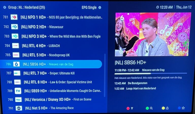 Als u de kanaalkiezer gebruikt zal deze alleen binnen de groep van bijvoorbeeld Nederlandse zenders blijven. Wilt u weer naar alle zenders druk dan nogmaals op de OK knop. Vervolgens met de ronde knop naar links (niet met het pijltje). Met het pijltje naar links gaat u naar de voorgaande actie pagina/scherm.